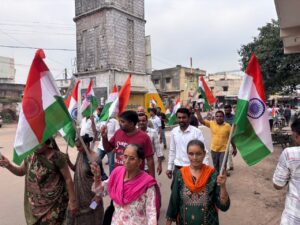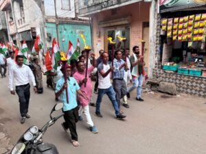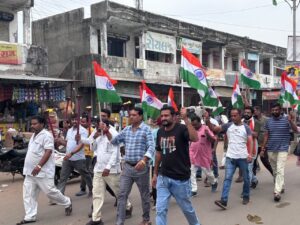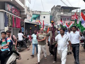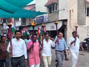 આણંદ જિલ્લા આંકલાવ શહેરમાં યુવાનોમાં દેશભાવના જાગે તે માટે તિરંગા મસાલા યાત્રા કાઢવામાં આવી તિરંગા મસાલ યાત્રામાં બીજેપી સંગઠન ના કાર્યકરો તેમજ નગરજનો ખૂબ મોટી સંખ્યામાં ઉપસ્થિત રહી મશાલ યાત્રા કાઢવામાં આવી.