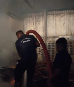 તા:01/10/2025 ના આજરોજ વહેલી સવારે 4:30 કલાકે સામરખા ચોકડી પાસે, આનંદ મેરેજ હોલની સામે આવેલ ( ભોમકા પ્લાય એન્ડ બોર્ડ ઇન્ડસ્ટ્રીઝ ) માં શોર્ટસર્કિટ ના કારણે આગ લાગેલ છે તેવો ફાયરકોલ આણંદ ફાયર એન્ડ ઈમરજન્સી સર્વિસીસના કંટ્રોલરૂમમાં મળેલ જ્યાં આણંદ ફાયર ઓફિસર ધર્મેશ ગોર ની સુચના મુજબ આણંદ ફાયર ડ્રાઈવર વિમલ પંચાલ, ફાયરમેન જયેશ ઠાકોર, મુકેશ પરમાર સાથે 2 ટ્રેની ફાયરમેન તુરંતજ ઘટના સ્થળે પહોંચી પાણી નો મારો ચલાવી આગ બુઝાવેલ. જેમાં કોઈપણ જાતની જાનહાની થયેલ નથી.