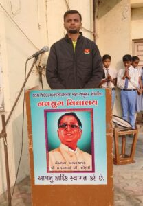 નવયુગ વિદ્યાલય જંબુસરમાં પ્રજાસત્તાક પર્વ કાર્યક્રમની શરૂઆત પ્રાર્થના ” પ્રભુ તુમ કહા રહતે હો ” થી થઈ હતી. ત્યારબાદ મહેમાન શ્રી દ્વારા દીપ પ્રાગટ્ય અને મહેમાનોનું સ્વાગત કરવામાં આવ્યું હતું.